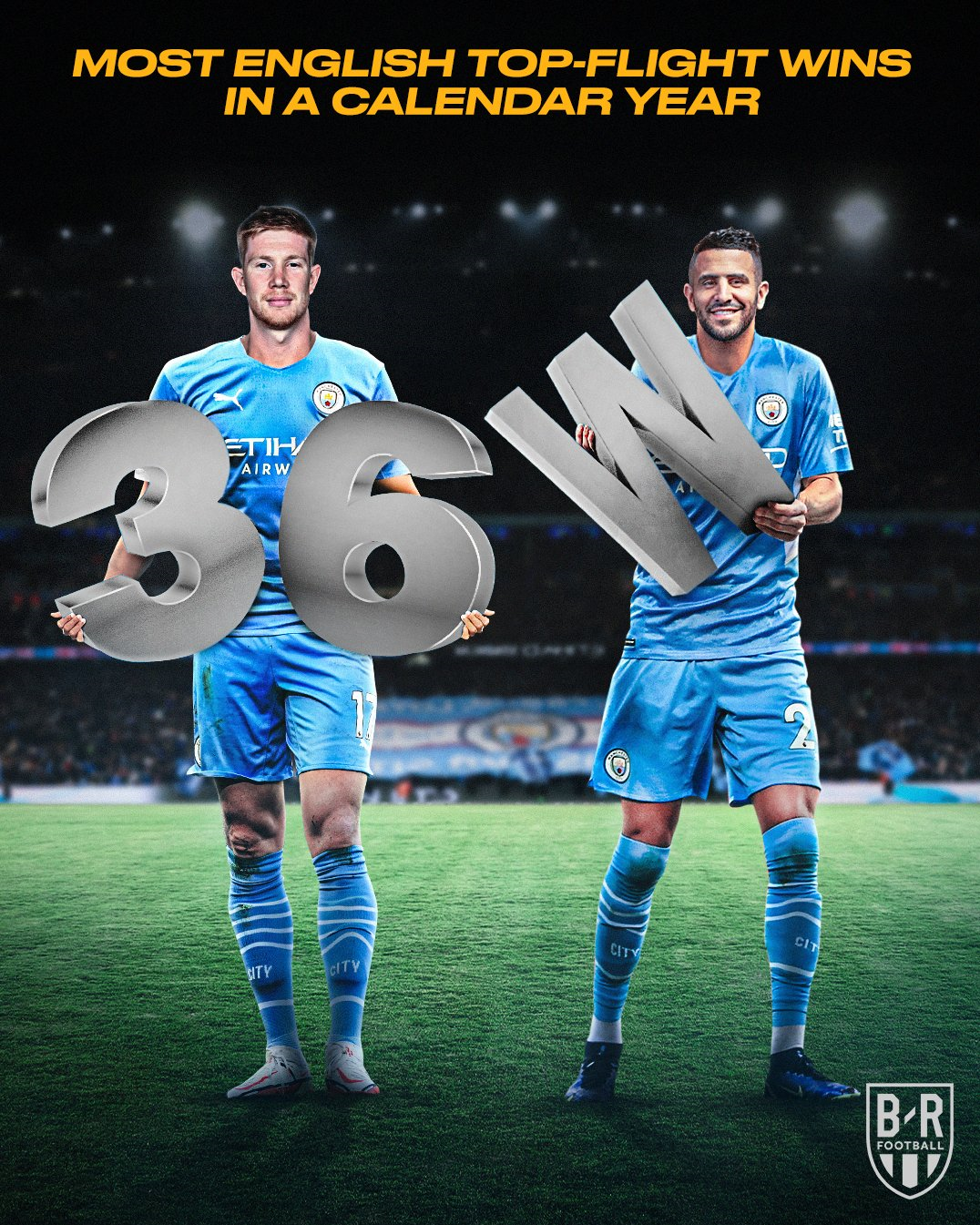 منچسترسیتی گواردیولا در سال 2021 نمایشی خیره کننده در لیگ برتر به ثبت رسانید و توانست آمارهای فوق العاده به نمایش گذارد. آنها در یک سال تقویمی به 36 پیروزی رسیدند تا به بهترین تیم تاریخ انگلیس بدل شوند. هیچی تیمی تاکنون نتوانسته بود به این تعداد برد در یک سال برسد.