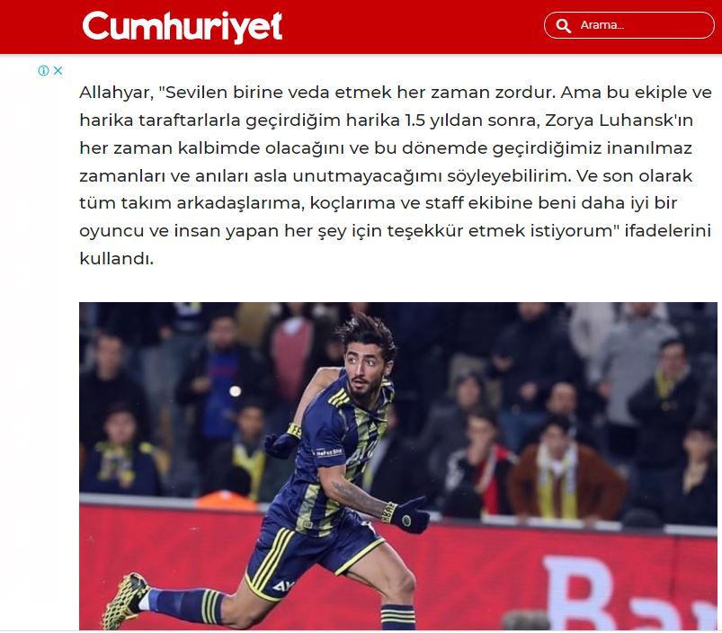 این رسانه ترکیه ای در ابتدا با بازتاب متن خداحافظی صیادمنش با باشگاه زوریا از جدایی قطعی این بازیکن و بسته شدن پرونده اش با این باشگاه اوکراینی خبر داد.