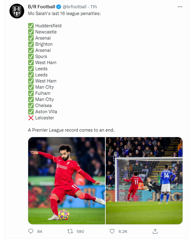 در این مسابقه یک پنالتی سهم لیورپول شد که محمد صلاح آن را از دست داد تا پس از 4 سال یک اتفاق ویژه رخ دهد. از سال 2017 و در 16 پنالتی قبلی، ستاره مسلمان همه پنالتیهای خود را گل کرده بود ولی این بار اشمایکل مقابل صلاح ایستاد و به سوژه بزرگ رسانههای انگلیس بدل شد.