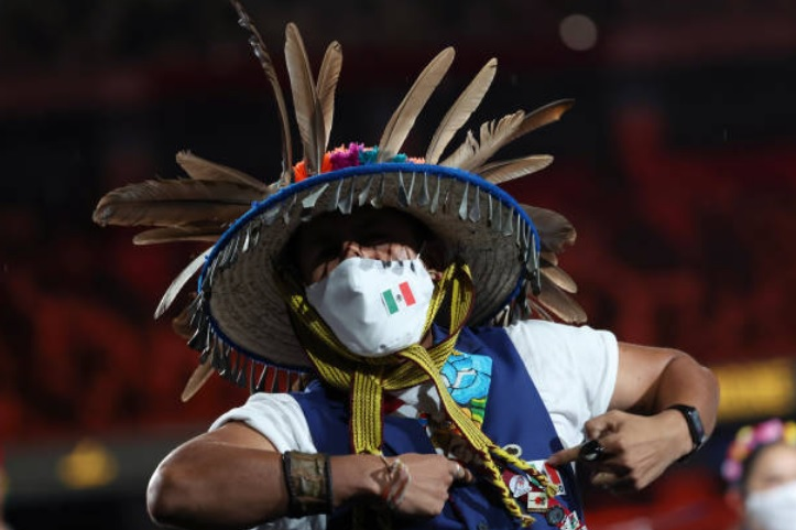 * ورزشکار مکزیکی با لباسی خاص که برگرفته از آداب و سنتهای این کشور بود در مراسم رژه حضور پیدا کرد.