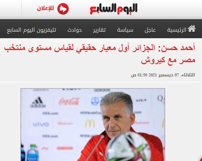 ستاره سابق مصری ها در مصاحبه با برنامه «کوره کل یوم»، گفت: الجزایر معیار حقیقی برای سنجش سطح عملکرد مصر با هدایت کارلوس کی روش است.