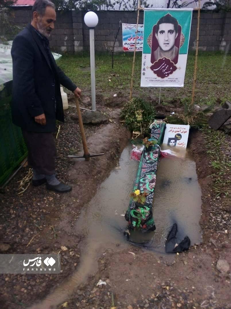 پس از ۱۵ روز و با بارش شدید باران در کمال تعجب و شرمساری مزار این شهید والامقام دچار آبگرفتگی شد که با حضور به موقع بسیجیان روستا این موضوع برطرف شد.