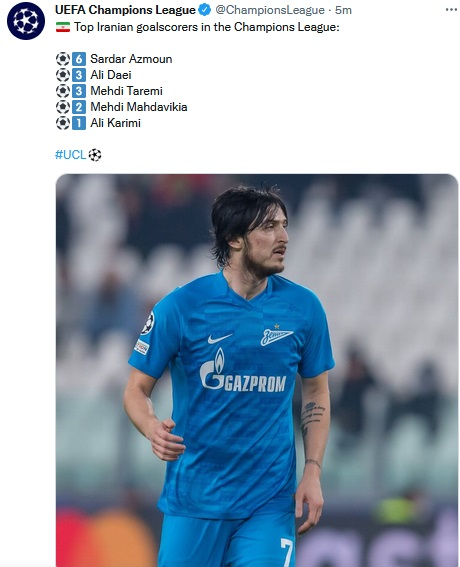 علی کریمی هم موفق شده یک گل در لیگ قهرمانان اروپا به ثمر برساند.