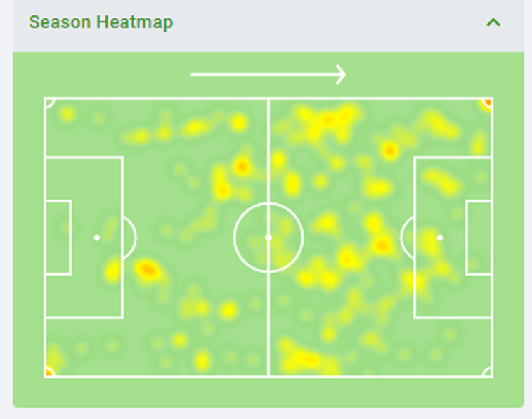 نقشه حرارتی قدوس در این فصل – او در همه پستها در این فصل برای برنتفورد بازی کرده است