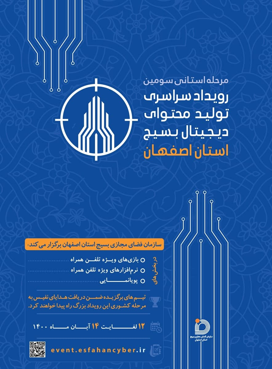 فرمانده سپاه صاحبالزمان(عج) استان اصفهان گفت: سومین رویداد تخصصی تولید محتوای دیجیتال بسیج در استان اصفهان، طی ۴۸ ساعت رقابت فشرده و با نشاط بین شرکتکنندگان برگزار خواهد شد.