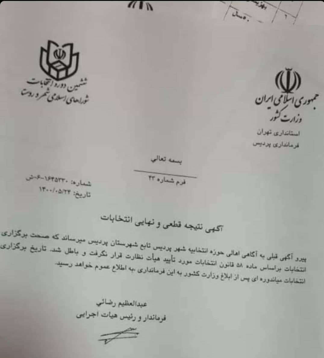 به گزارش خبرگزاری فارس از تهران، بعد از انتخابات ششمین دوره شوراهای اسلامی شهر و روستا در ۲۸ خرداد سال جاری و اعلام نتیجه نهایی توسط نهادهای ذیصلاح، به دلیل وجود برخی تخلفات در انتخابات و آرای برخی کاندیداها در شهرهای رودهن، بومهن، پردیس، قرچک، باقرشهر، کهریزک، بومهن، پاکدشت و… در برخی از شهرها انتخابات ابطال و در برخی دیگر تعدادی از اعضای شورای این شهرها بنا به مصوبه هیأت نظارت بر انتخابات برکنار و اعضای علی البدل جایگرین شدند.