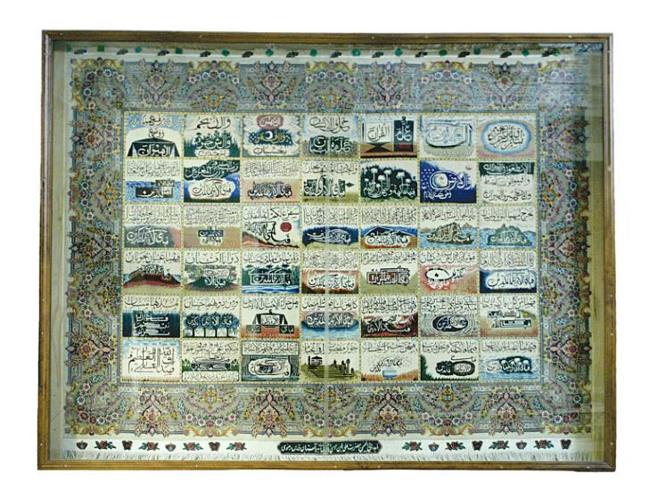 قالی کتیبهای که قدمت آن به قرن نهم برمیگردد. محل بافت این فرش تبریز است. تار و پود آن از پنبه، و پُرزهای آن از پشم است. در پیشانیِ این سجاده محرابی، کتیبه «الله اکبر کبیراً» بافته شده و آیاتی از سورههای ابراهیم، آلعمران و بقره در حواشی به چشم میخورد.