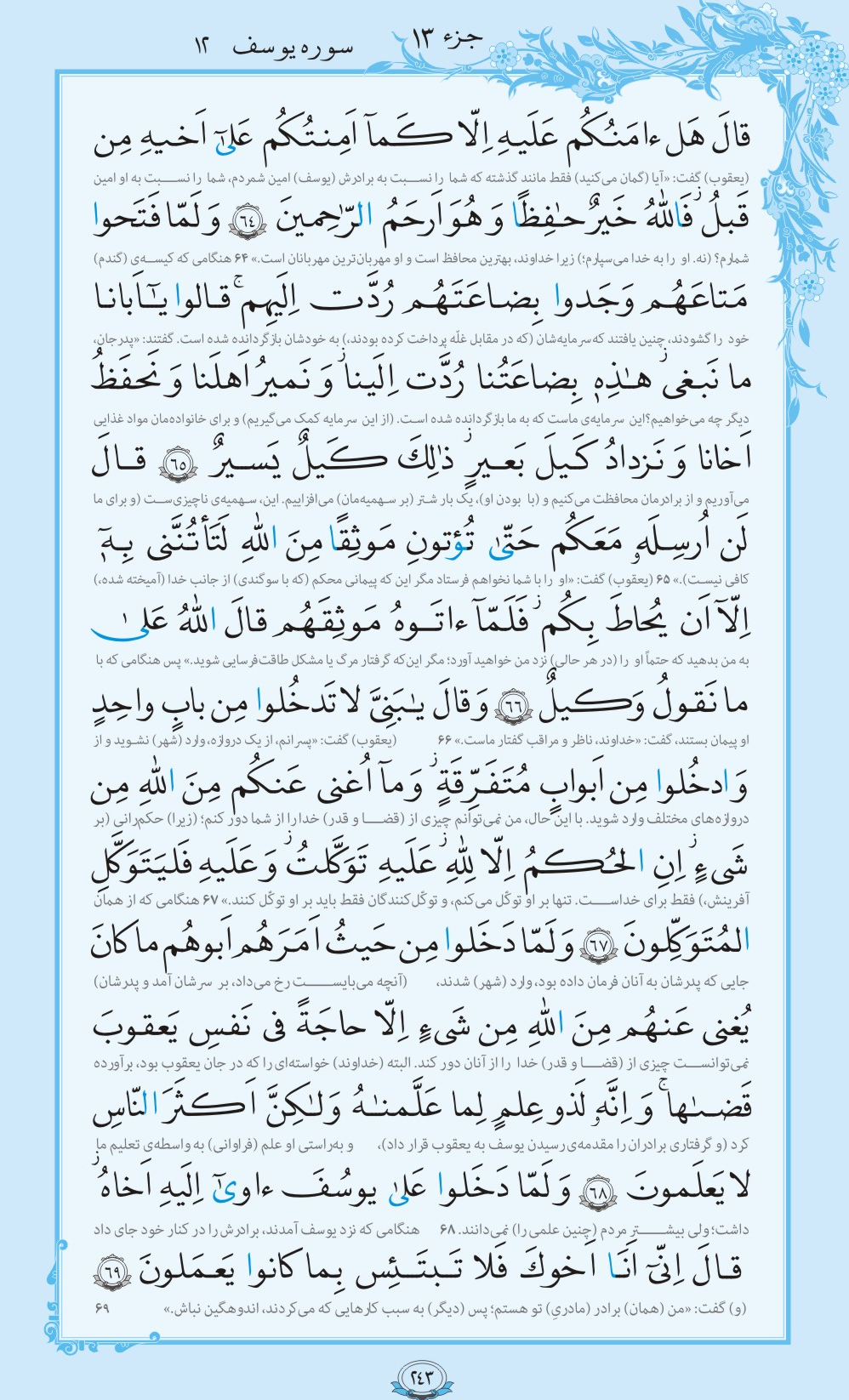 در ادامه تلاوت ترتیل صفحه ۲۴۳ قرآن کریم شامل آیات ۶۴ تا ۶۹ سوره مبارکه یوسف با صدای شهریار پرهیزکار تقدیم میشود.