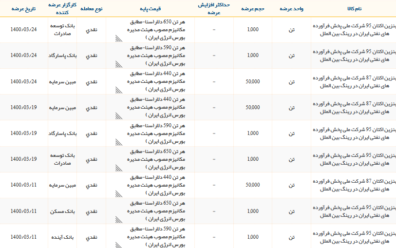 تصویر 1،2،3 مربوط به معاملات بنزین، گازوئیل و گازمایع در خردادماه سالجاری در بورس انرژی ایران است. بر این اساس میانگین قیمت صادراتی بنزین، گازوئیل و گازمایع به ترتیب 533، 507 و 305 دلار به ازای هر تن بوده است. به بیان دیگر قیمت صادراتی بنزین و گازوئیل ایران حدود 230 و 202 دلار به ازای هر تن بیشتر از قیمت صادراتی گازمایع است. لذا با استفاده از گازمایع در داخل کشور و صادرات بنزین و گازوئیل با قیمت بالاتر، درآمد ارزی دولت افزایش مییابد.