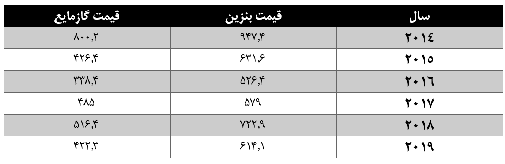 جدول 1- اختلاف قیمت بنزین و گازمایع