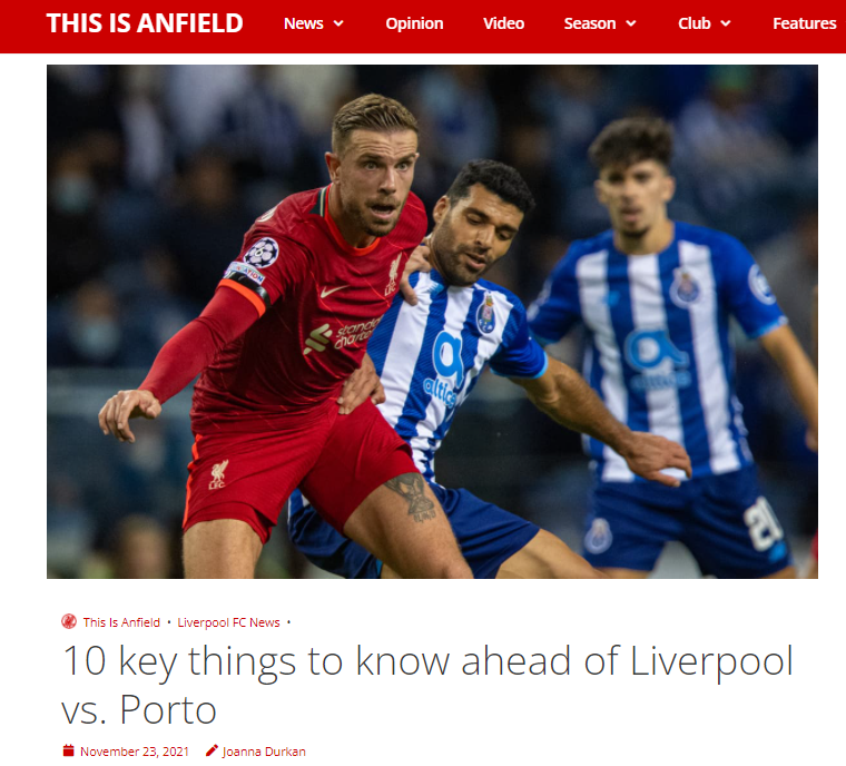 سایت This is anfield به تمجید از تیمِ پورتو پرداخت و آنها را تیمی قدرتمند نامید. این تیم به شدت آماده است و اکنون در صدر جدول لیگ پرتغال قرار دارد. شاگردان کونسیسائو در 9 بازی اخیر خود به 7 پیروزی و یک شکست دست یافتهاند و در 8 بازی اخیر توانستهاند 25 گل به ثمر رسانند.