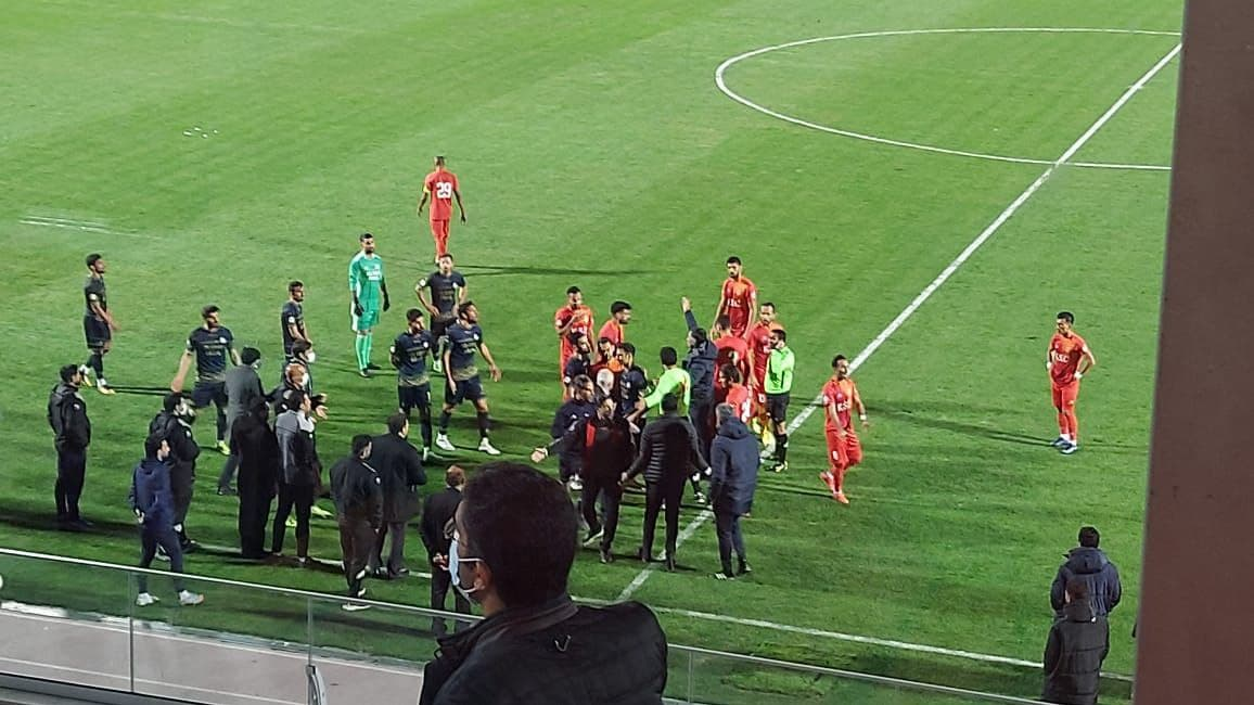 * بعد از این اتفاق بازیکنان گلگهر به شدت به داور معترض و به سمت او حملهور شدند.