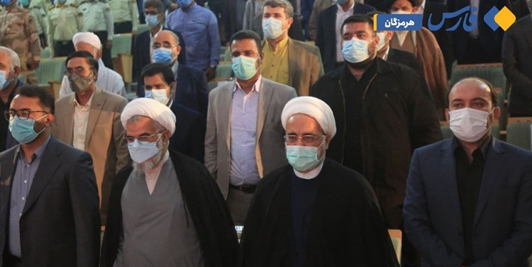 **سالن مراسم را انبوهی از قضات، کارمندان قضایی و اعضای شوراهای حل اختلاف استان و جمعی از فرماندهان انتظامی پُر کرده بودند و به ترتیب علی صالحی دادستان کنونی تهران، منصور آرامی نماینده بندرعباس به نمایندگی از مجمع نمایندگان استان، مهدی دوستی استاندار، حجتالاسلام عبادی زاده نماینده ولی فقیه در استان و سپس معاون اول قوه قضاییه و در پایان مجتبی قهرمانی به ایراد سخنرانی پرداختند.