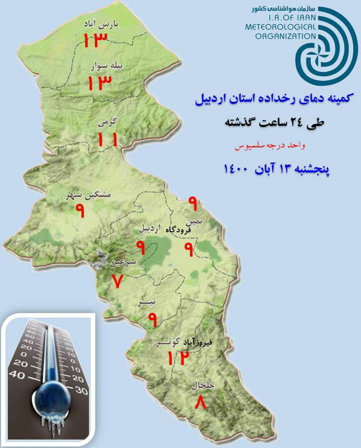 با خروج این سامانه بارشی از منطقه، امشب و صبح شنبه هفته آینده در مناطق مرکزی و جنوبی استان دمای هوا چند درجهای زیر صفر افت خواهد کرد.