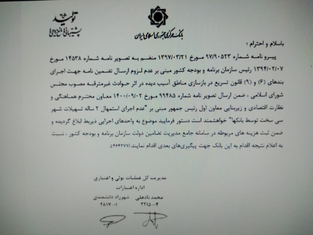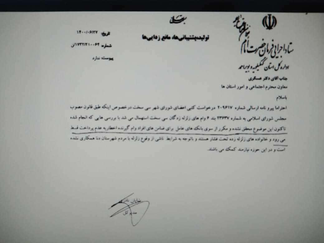 فرماندار دنا گفت: برا این اساس افراد آسیب دیده از زلزله شهرستان اعم از تولیدی و غیر تولیدی که قبل از وقوع زلزله تا روز وقوع حادثه تسهیلات دریافت نمودند تسهیلاتشان به مدت دو سال استمهال میگردد و سود متعلقه دو سال توسط دولت پرداخت میگردد و تمامی بانکها در هر شعبه و نقطه ای موظف به اجرای این دستورالعمل قانونی می باشند.