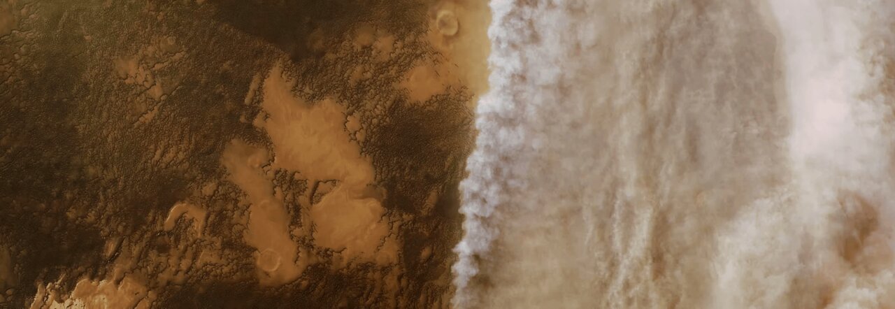 سیاره سرخ در هر سال مریخی (که معادل ۶۸۶.۹۸ روز زمینی طول میکشد)، با توفانهای گردوغبار منطقهای مواجه میشود که همزمان با تابستان در نیمکره جنوبی است. هر سه سال مریخی (معادل پنج سال و نیم زمینی)، این توفانها به اندازهای سهمگین میشوند که همه این سیاره را در بر میگیرند و میتوان آن را از زمین مشاهده کرد.