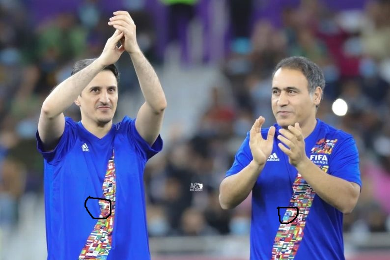 با افشاگری یونس محمود مشخص شد تنها مهدوی مهدوی کیا پرچم رژیم اشغالگر را از پیراهنش پاک نکرده و بقیه بازیکنان تیم ستارگان عرب، پرچم این رژیم جعلی را محو کردند. البته در ترکیب تیم منتخب ستارگان دو میهمانی افتخاری حضور داشت. جانی اینفانتیو رئیس فیفا که پیش از این با اقدامات متعدد نشان داده بود حامی رژیم اشغالگر است.