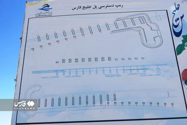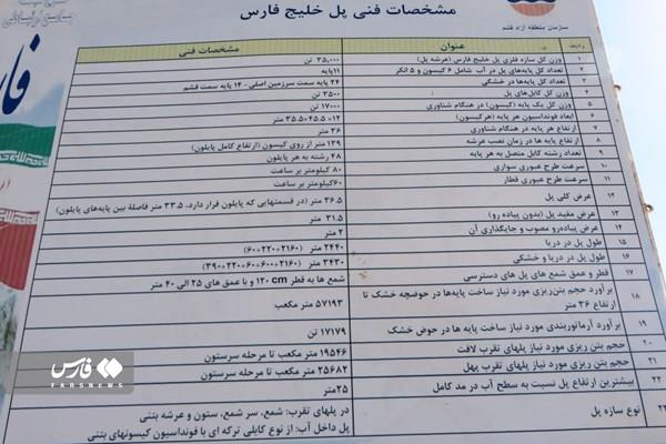 یکی از ویژگیهای مهمی که در ساخت این پل در نظر گرفته شده ایجاد دو مسیر برای خودروها و قطارهاست، موضوعی که نفش مهمی در تسریع حمل مسافر و کالا میتواند داشته باشد. همچنین پل خلیج recive بر روی دریا و خشکی در مجموع ۴۱۳۰ متر طول دارد. طول این پل در محدوه خشکی به سمت لافت ۷۹۰ متر، در محدوه خشکی به طرف پهل حدود ۸۴۰ متر و ۲۵۰۰ متر نیز طول پل برروی دریاست. این در حالی است که مرحله نیلینگ ساحل این پل و سیستم پایهها انجام شده است.