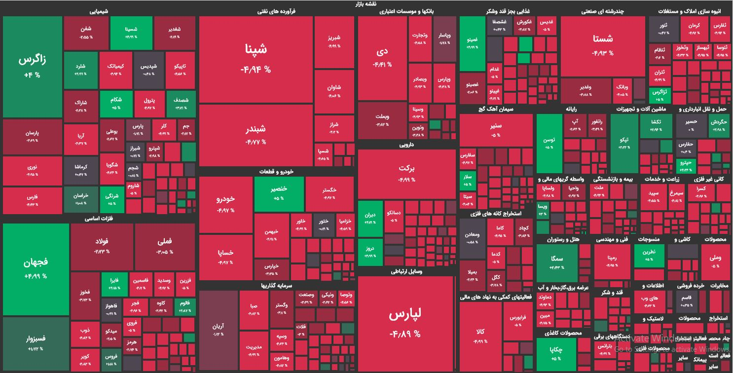در بازار امروز، بیشترین ارزش معاملات به ترتیب برای گروه شیمیایی، فرآوردههای نفتی، فلزات اساسی و خودرو به ثبت رسید که در این میان نمادهای فارس، شستا، فولاد و فملی بیشترین تاثیر منفی و نمادهای فایرا، چکاپا، خنصیر و دروز بیشترین اثر مثبت را بر شاخص کل داشتند؛ بیشترین ارزش معاملات متعلق به نمادهای شپنا، لپارس، شبندر و شستا و بیشترین حجم معاملات متعلق به نمادهای خودرو، خساپا، شبندر و خبهمن بود.