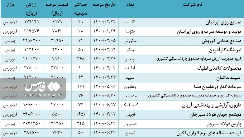 وضعیت عرضههای اولیه بورسی و فرابورسی سال 1400