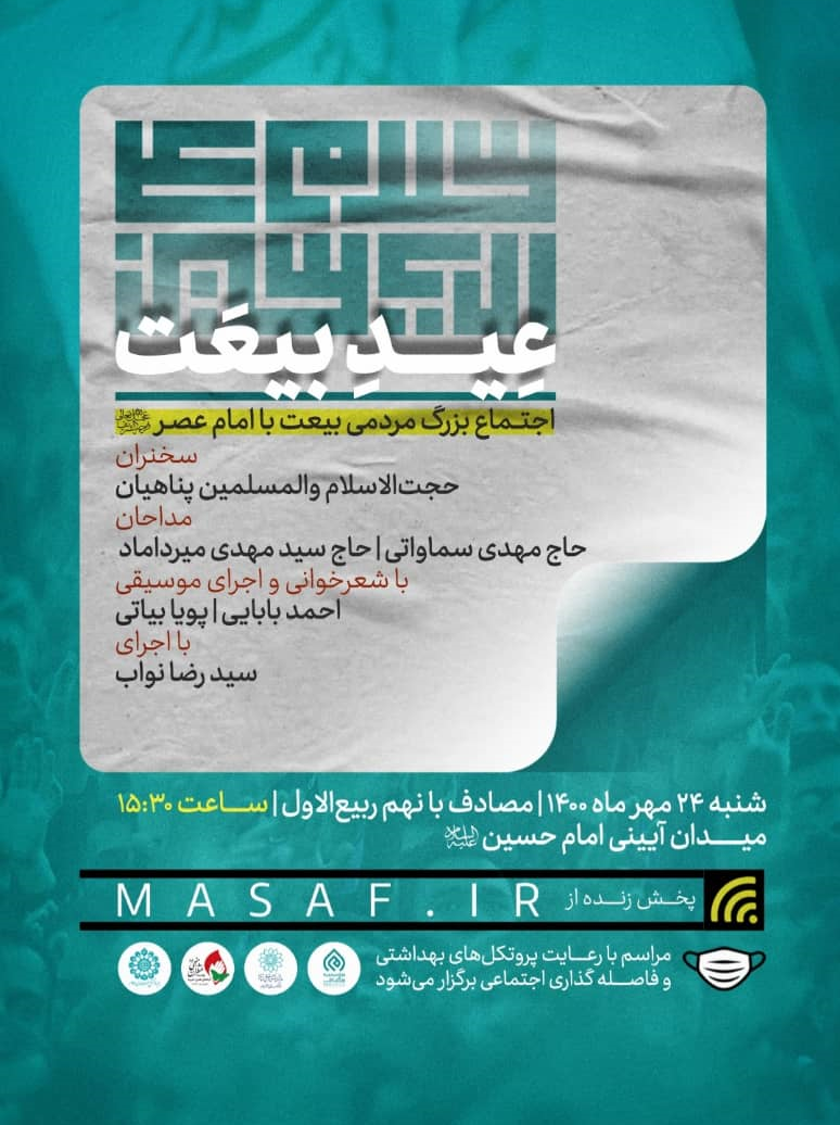 مراسم اجتماع مردمی بیعت با امام زمان (عج) نهم ربیع الاول از ساعت ۱۵.۳۰ با رعایت نکات بهداشتی و فاصلهگذاری اجتماعی به همت فرهنگسرای عترت برگزار میشود. همچنین این برنامه به صورت زنده از سایت مؤسسه مصاف پخش میشود.