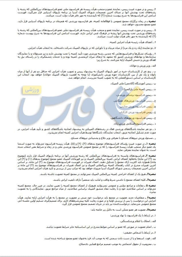 در این اساسنامه جدید که برای دور بعدی انتخابات کمیته اجرایی میشود، انتخاب دبیر کل از سوی رئیس کمیته ملی المپیک صورت میگیرد. همچنین براساس تبصره 3 ماده 16، داوطلب هایی که به نمایندگی فدراسیونهای متبوع در انتخابات هیأت اجرایی شرکت میکنند، پس از انتخاب، به عنوان عضو حقیقی و برای یک دوره 4 ساله در ترکیب هیأت اجرایی قرار میگیرند.