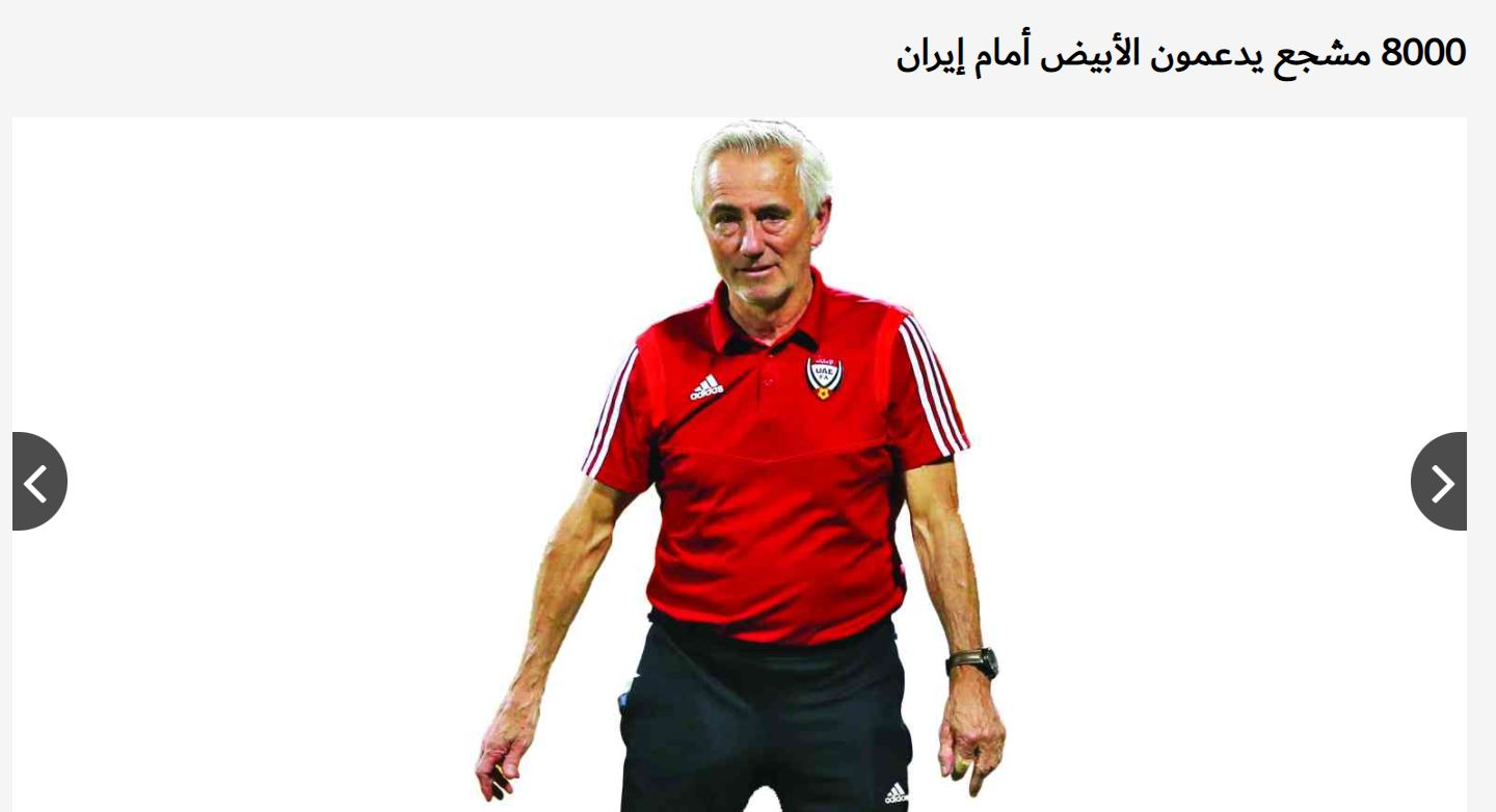 روزنامه البیان امارات تعداد تماشاگران بازی فردا را 8 هزار نفر دانست و عنوان کرد اتحادیه فوتبال این کشور پس از هماهنگی با سازمان ملی مدیریت بحران تصمیم گرفته که از 80 درصد ظرفیت ورزشگاه ابوظبی استفاده کند.