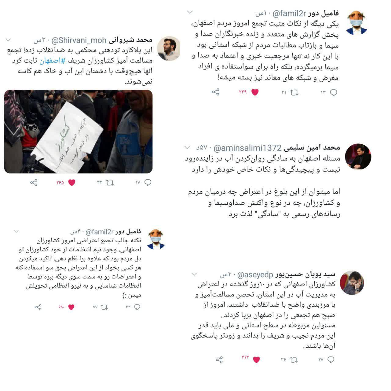 فعالان فضای مجازی نیز به تجمع امروز مردم و کشاورزان اصفهانی واکنش نشان دادند.