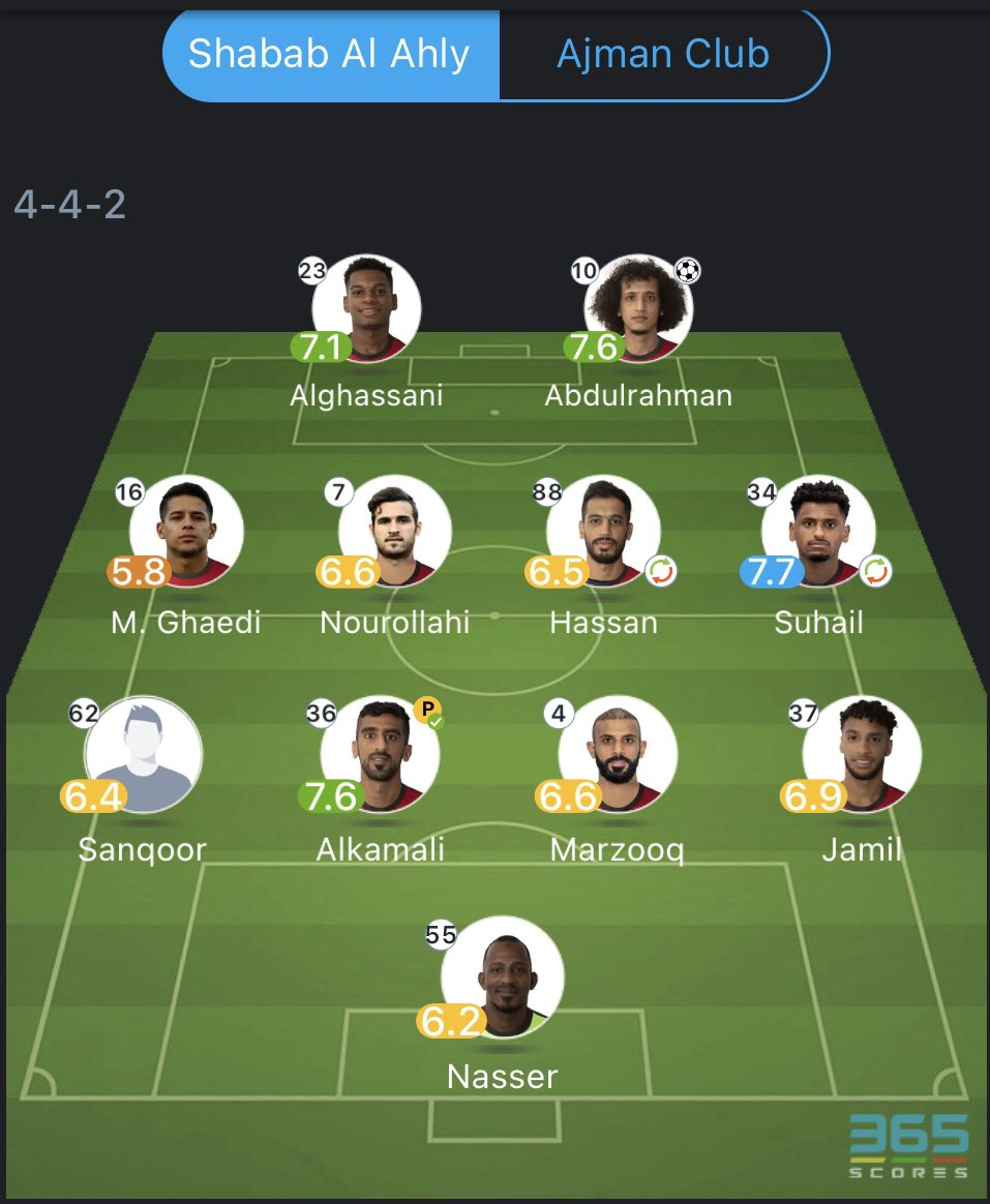 مهدی قائدی و احمد نوراللهی دو بازیکن ملی پوش کشورمان در این بازی در ترکیب اصلی شباب الاهلی حضور داشتند.