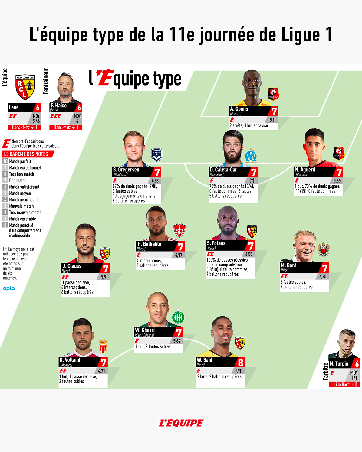 نشریه معتبر «اکیپ» فرانسه امروز با اتمام بازی های هفته یازدهم لیگ به معرفی برترین های هفته پرداخت و تیم منتخب را معرفی کرد.