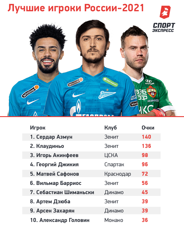 در نظرسنجی انجام شده سردار آزمون با کسب 140 امتیاز به عنوان بهترین بازیکن سال 2021 لیگ روسیه انتخاب شد.
