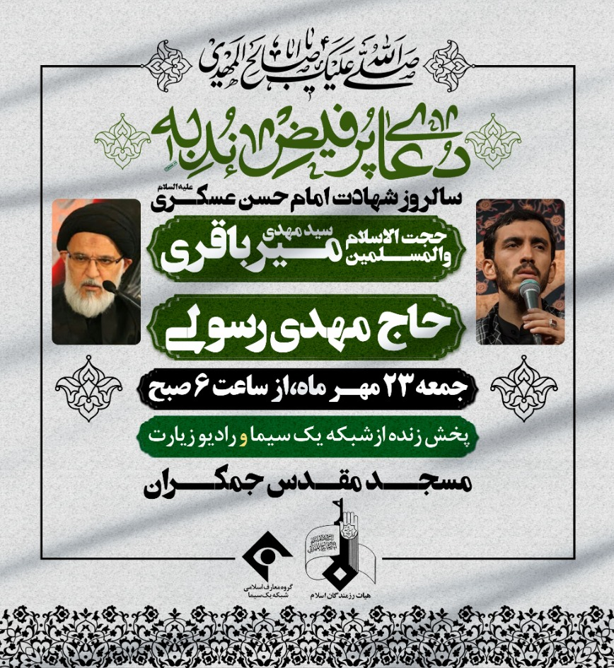 در این مراسم حجتالاسلام سید مهدی میرباقری سخنرانی و مهدی رسولی قرائت دعا خواهد داشت.