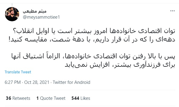 در ابتدا نوشت: «آیا اگر مشکلات اقتصادی حل شود، مردم به سمت فرزندآوری بیشتر خواهند رفت؟ «نه»! از نظر جمعیتشناسان در کشورهایی که سطح اقتصادی پایینی دارند زاد و ولد بیشتر است و کشورهایی که از نظر سطح درآمدِ خانواده بالا هستند، تعداد فرزندان کمتری دارند!