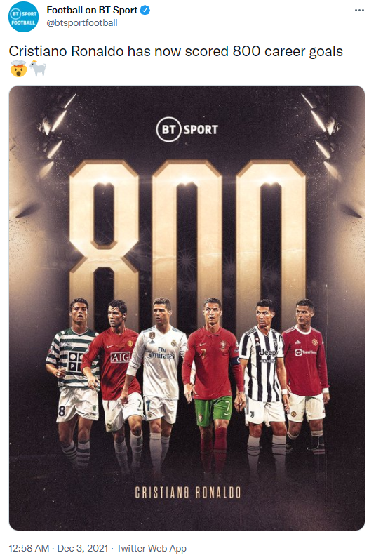 طرح بی تی اسپورت: 800 گل برای کریستیانو