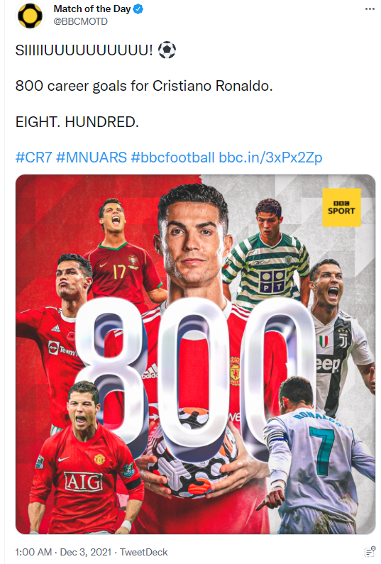 صفحه «مچ آو د دی» با شادی خاص رونالدو، این رکورد را بازتاب داد