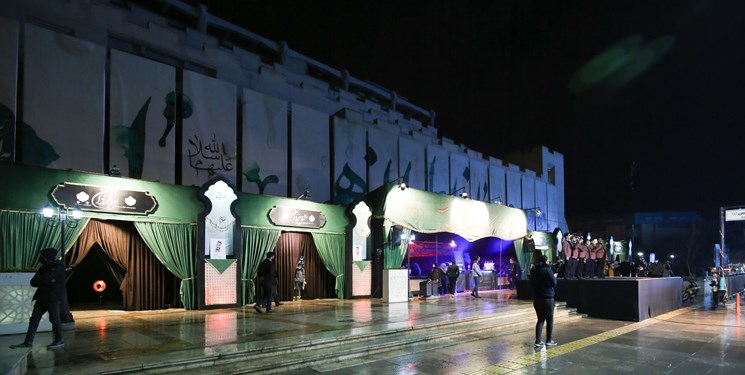 از حوالی میدان که عبور کنی، حدیث کسا در فضا طنینانداز شده است، شب شهادت اما هیاتهای مذهبی هم آمدهاند تا در کنار موکبهای برپاشده، علم به پا دارند، هیاتها علم به دوش میگیرند، عدهای نوای عزا سر میدهند و عدهای طبل میزدند و رهسپار چهارباغ میشوند. در گوشه و کنار پیادهرو، مردم ایستادهاند و به دسته عزا مینگرند، از حال دلشان مادر خبرداد و بس.