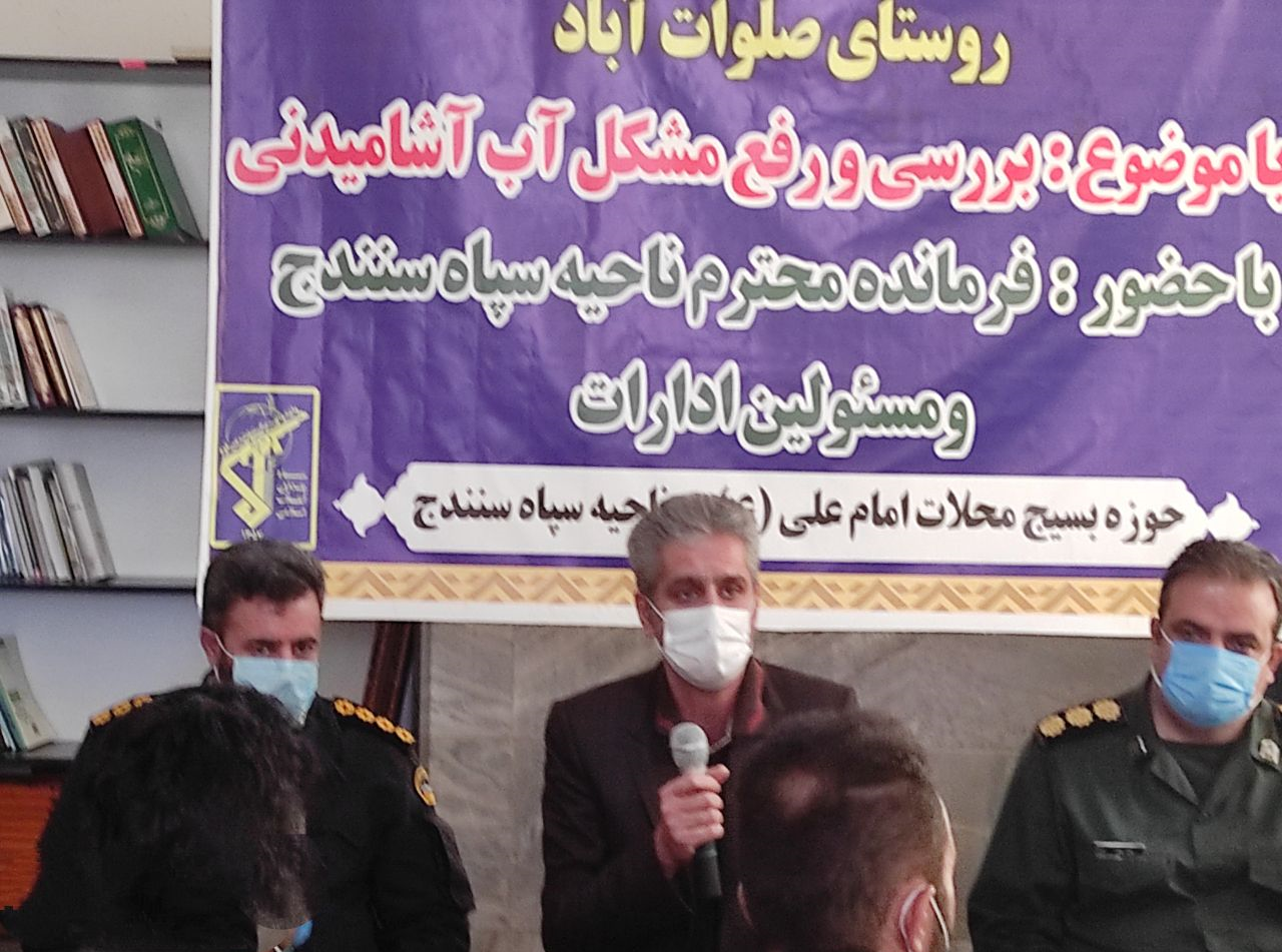 صلوات آباد مشکل آب دارد، برخیها با استفاده از پمپ آب و تانکر بیشترین استفاده از آب روستا میکنند و دست دیگران را خالی میگذارند تزریق آب از سنندج مشکل اهالی روستا را حل کرده لذا نباید مانع تراشی کنیم.