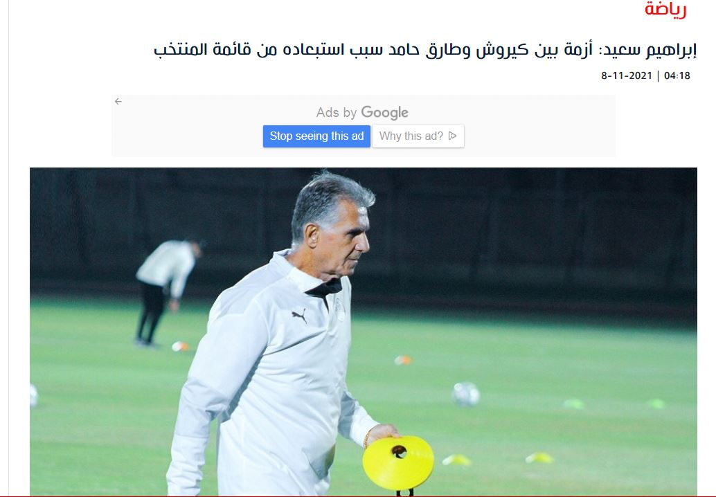 این اسطوره تیم ملی مصر در ادامه به محکوم کردن تصمیم کی روش پرداخت و گفت: به نظرم طارق حامد شایسته حضور در تیم ملی مصر است و او می تواند به تیم ملی کمک کند.