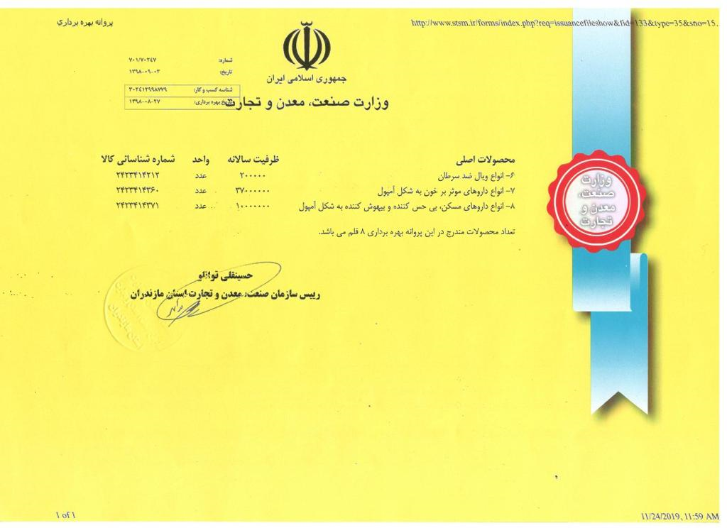 در فاز اول قرارداد ما با بانک صنعت و معدن، توافق شده بود این کارخانه ۳ میلیون عدد آمپول در یک شیفت در سال تولید کند اما با لطف خدا و پروانهای که اخذ کردیم کارخانهای با ظرفیت ۷۲ میلیون عدد در سال ساختیم که ۲۴ برابر تعهد بانکیمان بود و میتوانستیم در یک شیفت ۷۲ میلیون پوکه ظرفیت تولید داشته باشیم، این اتفاق باعث شد این پروژه که تراز ملی بود بیشتر مورد توجه واقع شود در همین زمانها بود که اتفاقات ناگواری برای ما ایجاد شد. با توجه به ظرفیت خوب خط تولیدمان توانستیم مجوزهای اولیه برخی داروهای قلبی ـ عروقی، ضددرد، داروهای ضدتهوع، گوارشی، ضدسرطان و داروهای بسیار مهم دیگری را دریافت کنیم.