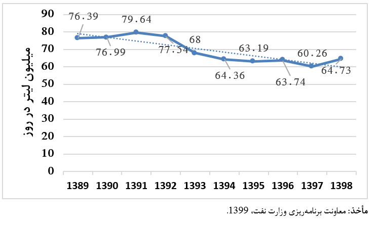 با توجه به نمودارهای زیر تا پایان سال 1398 تولید و سهم نفت کوره پالایشگاههای کشور از کل فراوردههای نفتی 64.73 میلیون لیتر در روز و 19.7 درصد است و که این مقادیر در سال 1395 برابر با 63.19 میلیون لیتر در روز و 23.2 درصد بوده است. بنابراین، روند توسعه و ارتقا پالایشگاهی رو به بهبود بوده است ولی بسیار کند است و تا سهم تکلیفی 10 درصدی نفت کوره فاصله زیادی دارد.