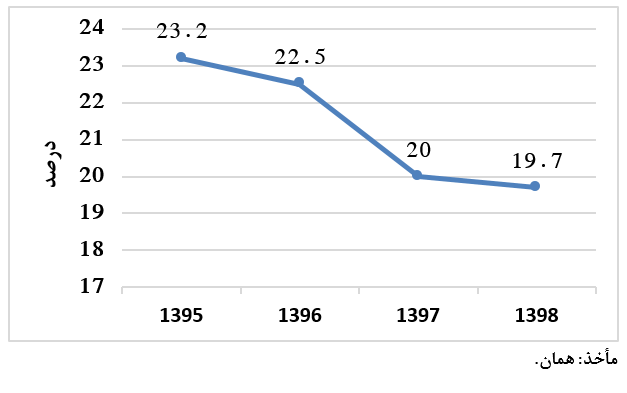 سهم تولید نفت کوره از کل فراوردههای نفتی در پالایشگاههای کشور طی سال 1395 الی 1398