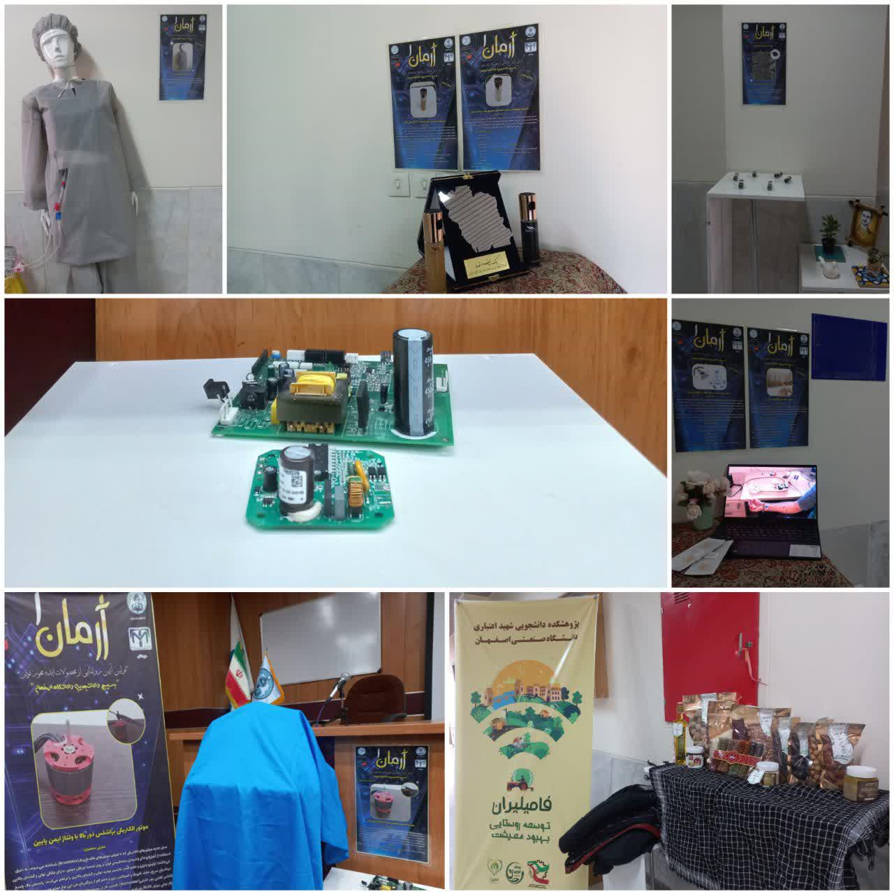 در این مراسم از چند محصول دانش بنیان که توسط دانشجویان دانشگاههای استان به مرحله ساخت رسیده بود رونمایی شد؛ این محصولات عبارتند از موتور الکتریکی براشلس دور بالا با ولتاژ ایمن پایین، اسپری پوشاننده زخم با خاصیت تسریع روند بهبودی زخم، اسپری پوشاننده زخم با خاصیت بندآورندگی خون، سنتز انواع افزودنی کربنی برای باتری سرب اسید، لباس مخصوص بیماران دیالیزی، چسب بخیه زیپی جایگزین بخیه و ساخت و توسعه دستگاههای EE.