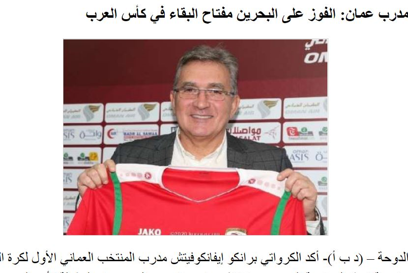به گزارش خبرگزاری فارس، تیم ملی فوتبال عمان امروز(دوشنبه) در دور پایانی مرحله گروهی جام کشورهای عربی به مصاف تیم ملی بحرین می رود.